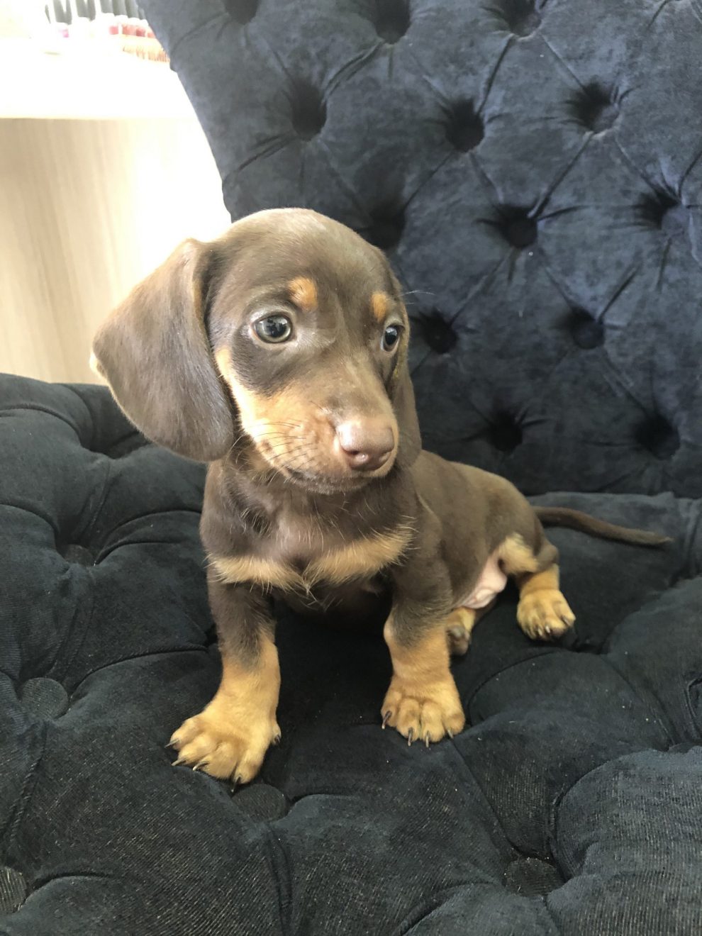 Filhote Dachshund macho na cor chocolate, esse príncipe tem ótima energia e adora receber carinho. É um filhote dócil, carinhoso, ótimo companheiro para crianças e para adultos, um amiguinho para a vida inteira. Você vai se derreter com tanta fofura.
